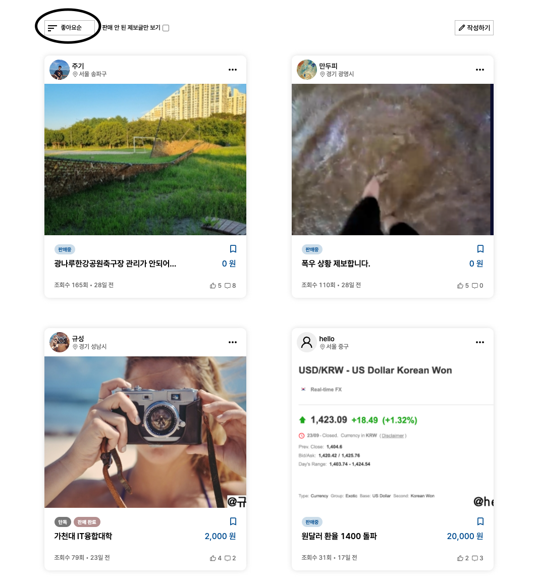 서비스 특성상 특별하게 '피드에 정렬 옵션이 있다' 라는 조건 때문에 조금 복잡합니다.