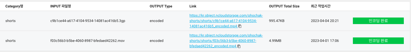 - 이후 인코딩된 파일과 DB에 생성된 게시글 데이터를 연결해주는 키값 역할 뿐만 아니라 인코딩 상태를 체크할 수 있는 값이 됩니다.